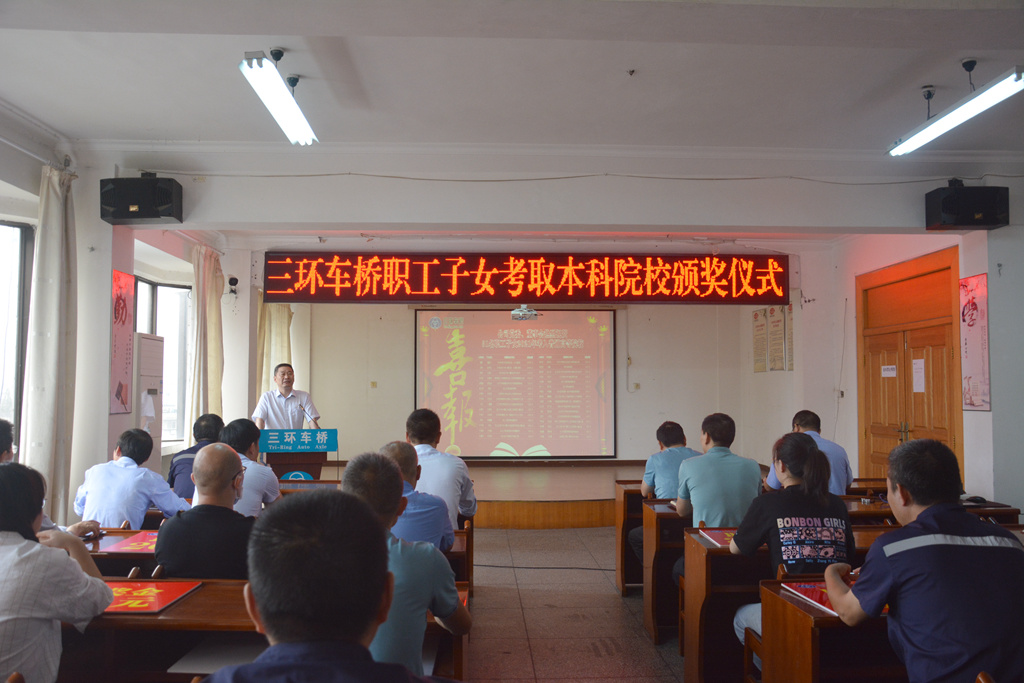 在助學獎金頒發(fā)儀式上,柳正強同志首先代表黨委、董事會向金榜題名的各位同學表示熱烈的祝賀!向含辛茹苦、默默付出,培養(yǎng)子女求學上進的各位家長表示由衷的敬意!他指出,對車橋?qū)W子考上大學進行獎勵,是車橋“大家庭”企業(yè)文化的一種溫馨體現(xiàn),是關心職工、引導職工子女發(fā)憤學習的重要舉措。百年大計,教育為本,國家提出了科教興國,公司提出了人才強企,希望各位莘莘學子倍加珍惜這來之不易的大學錄取機會,努力學習,成就自己;爭做自尊、自愛、自律、自強的大學生,讓父母安心、放心。如果在座的學子將來學成之后想來車橋,我們將張開臂膀歡迎大家的加入,一起來建設我們的車橋。